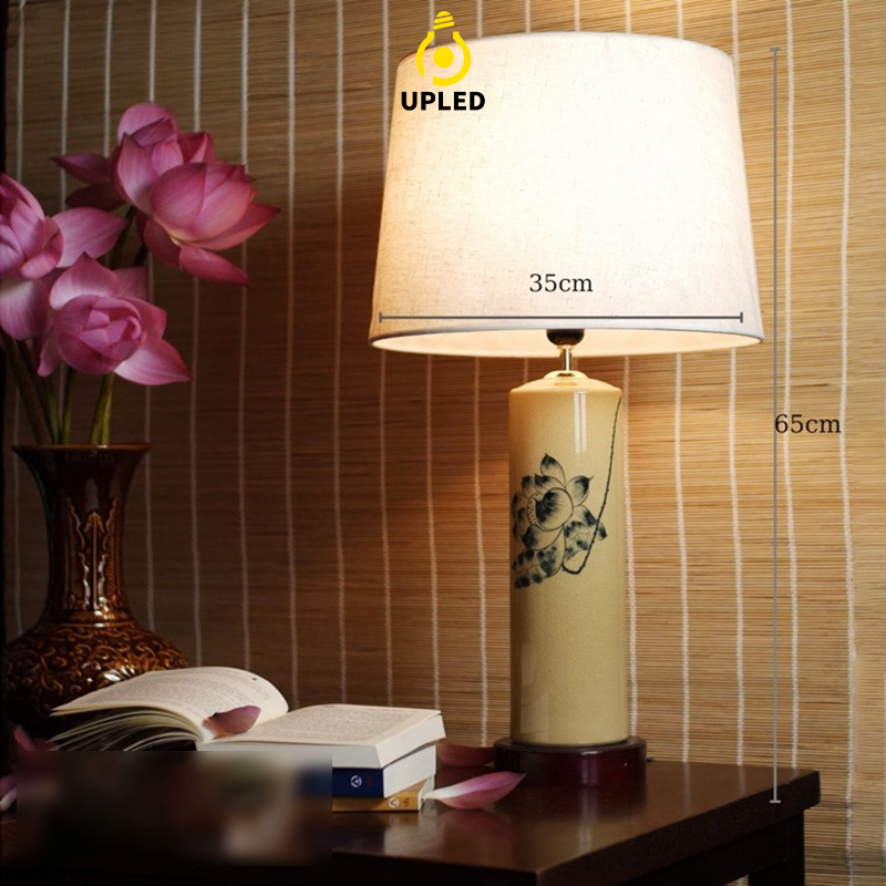 • Chất liệu: Gốm sứ Bát Tràng, chụp đèn vải cao cấp.