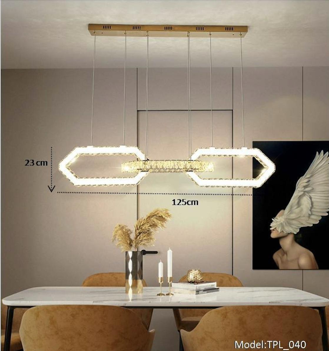 Đèn thả bàn ăn tphcm pha lê mắt xích tích hợp công nghệ chiếu sáng Led cao cấp thích hợp trang trí nội thất phòng khách, bàn ăn, khu mua sắm, văn phòng, biệt thự, chung cư, nhà hàng, cafe cao cấp...