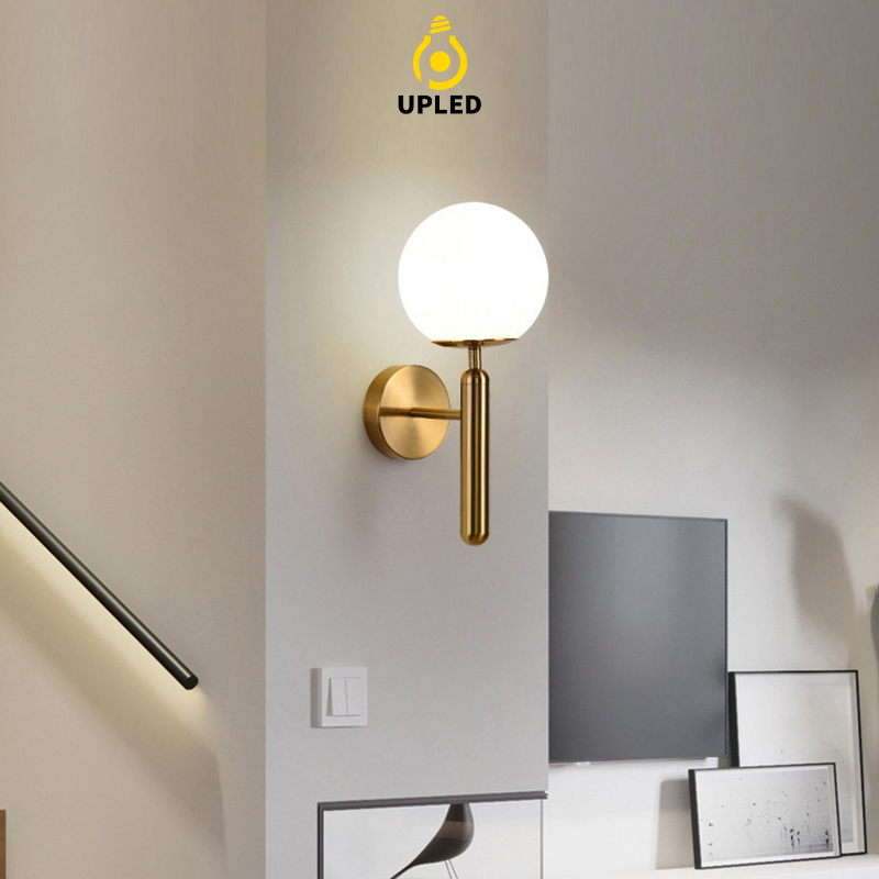 Đèn Treo Tường Trang Trí Phòng Khách Phòng Ngủ Chao Sữa UPLED mạ vàng hiện đại