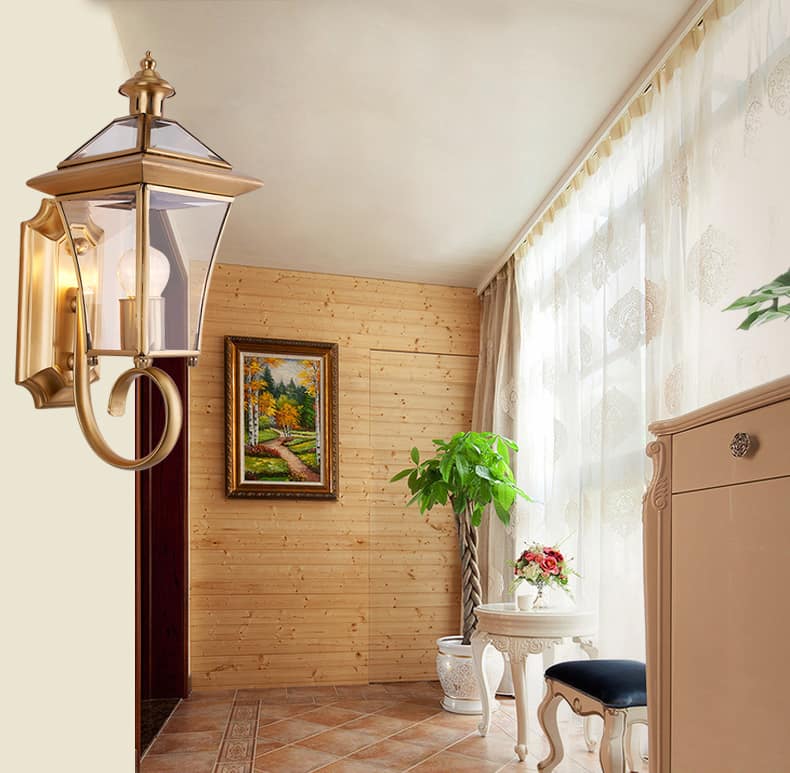 Đèn treo tường trang trí phòng khách CAO CẤP, Đèn tường ngoài trời chống nước Đồng Hộp Cong