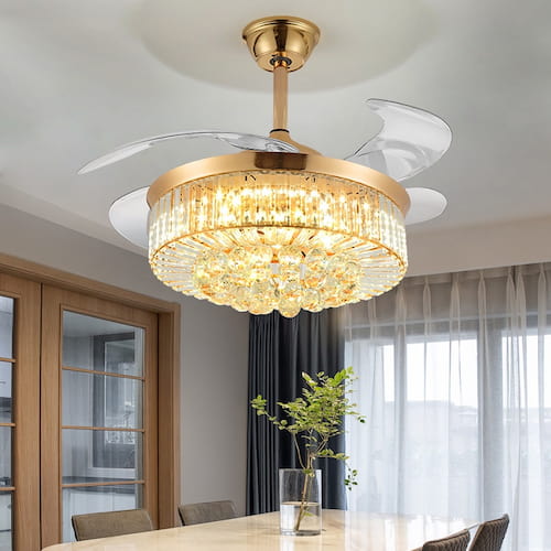 Quạt trần đèn chùm UPLED Pha Lê Cao Cấp