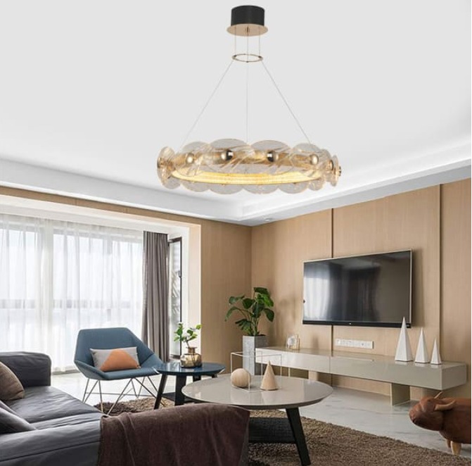 Đèn chùm phòng khách luôn là lựa chọn hàng đầu để tạo điểm nhấn cho không gian. Với thiết kế tinh xảo và ánh sáng rực rỡ, đèn chùm giúp phòng khách trở nên sang trọng và ấm cúng.
