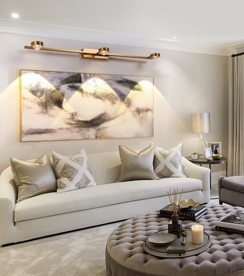 Đèn soi tranh khổ lớn làm nổi bật không gian sống
