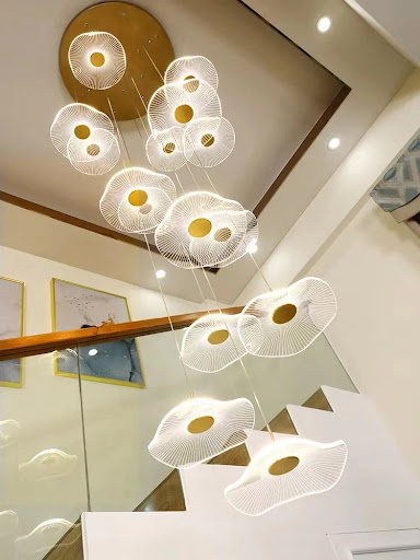 - Không gian thông tầng nên từ 4.5m trở lên để đèn phát huy hiệu ứng thả tầng