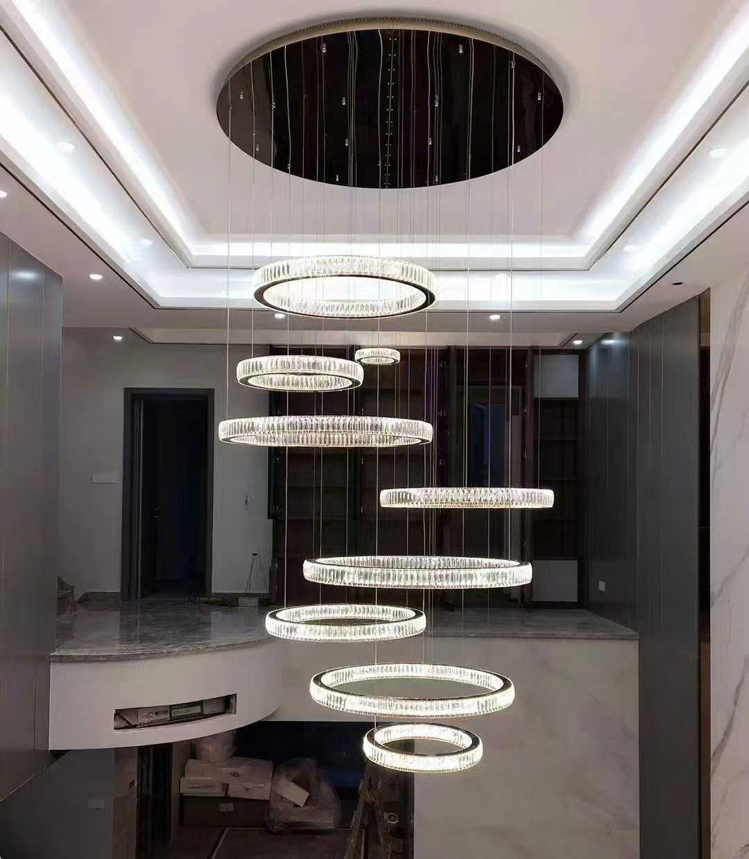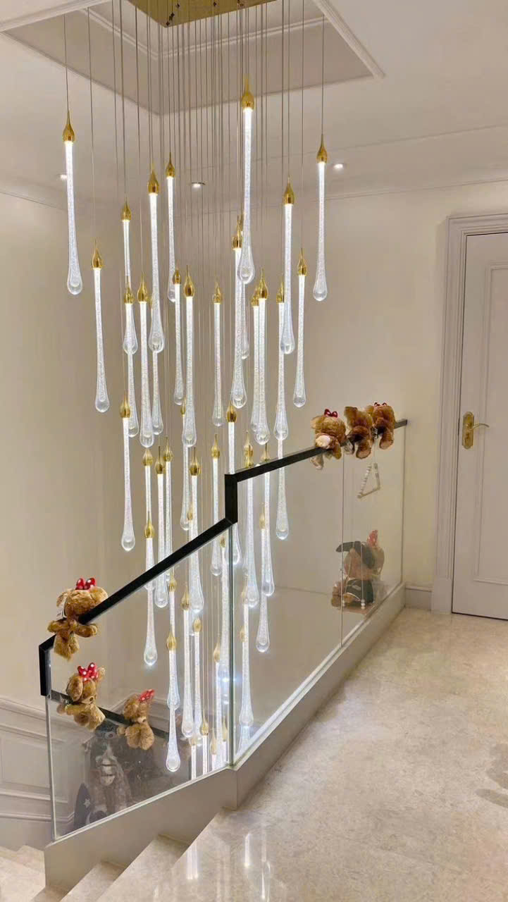 Đây là dòng đèn chùm thông tầng sang trọng thường xuất hiện trong các công trình mang phong cách luxury hoặc tân cổ điển.