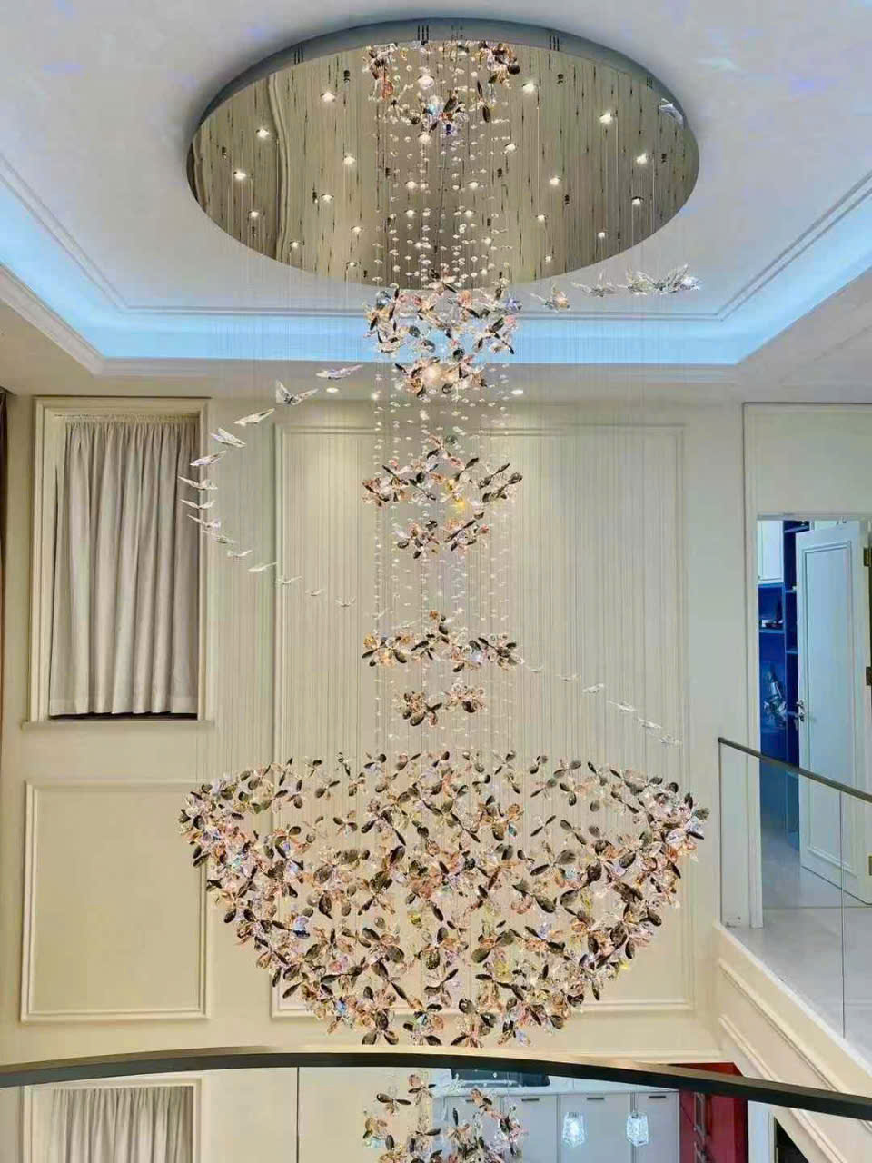 - Ánh sáng phản chiếu qua các lớp pha lê tạo hiệu ứng waterfall chandelier rất nổi bật.