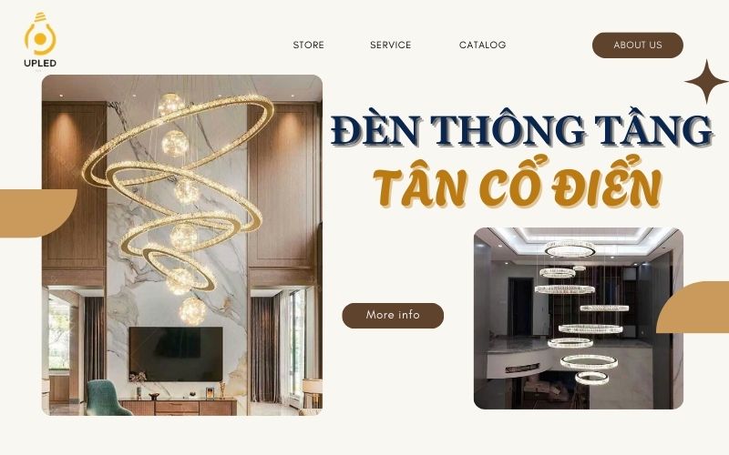 Trong các công trình kiến trúc cao cấp như biệt thự, khách sạn hay villa nghỉ dưỡng, đèn thông tầng tân cổ điển luôn được xem là điểm nhấn quan trọng giúp nâng tầm giá trị thẩm mỹ của không gian. Không chỉ đóng vai trò chiếu sáng, loại đèn này còn thể hiện gu thẩm mỹ và đẳng cấp của chủ nhân công trình.