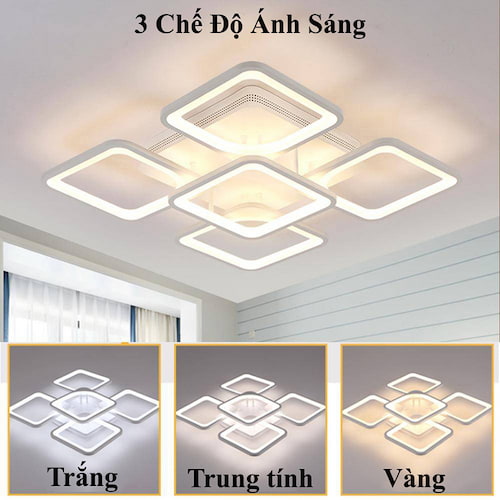 Đèn mâm ốp trần hình vuông mica hợp kim cao cấp